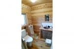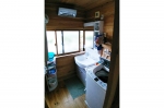 ⑭after洗面所天井と壁には杉板を貼りました。床は赤松です。