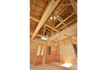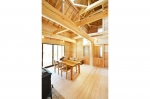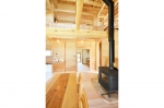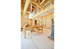 - 内壁は台所以外全て杉板貼り。構造材は全て表しで大黒柱と階段は丸太で使いました。