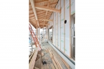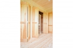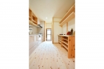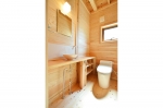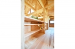 - できるだけ自然素材で造るというお施主さまの希望を叶えるため、内外壁、床、天井を無垢材で仕上げるだけではなく通常合板を使う床下地、棚板まで無垢材を使用しました。また断熱材は外断熱に杉皮のフォレストボード、内断熱に木繊維のウッドファイバーのダブルです。